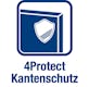 - Optionaler, widerstandsfähiger 4Protect Kantenschutz als Kontrastkante für besonders hohe Schlag-, Abrieb- und Kratzfestigkeit bei stumpfen Türen und gefälzten Türen mit eckigen Kanten