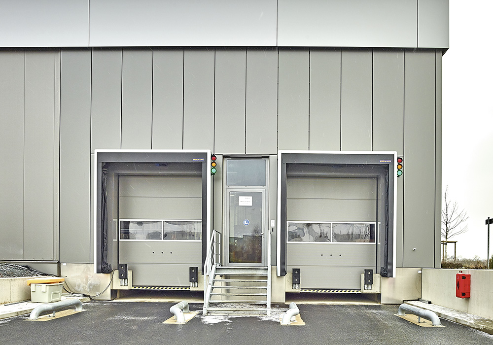 Nicht nur an die Produktion stellt der Hersteller für Dialysefilter „B. Braun Melsungen“ höchste Ansprüche. Auch die Logistik muss modernsten Anforderungen standhalten. Um dies zu gewährleisten, lieferte Hörmann für dieses Projekt unter anderem Industrie-Sectionaltore sowie Vorschub-Ladebrücken und aufblasbare Torabdichtungen für die Verladestellen. Für eine Be- und Entladung kann der LKW mit geschlossenen Türen an die Verladestation andocken. Die Torabdichtung bläst sich auf und dichtet das Fahrzeug dreiseitig ab, erst dann öffnen sich die Industrietore. Dadurch werden die zu verladenden Produkte optimal vor Witterungseinflüssen geschützt. Zusätzlich spart dies Energiekosten und verhindert Zugluft. Die Vorschub-Ladebrücken lassen sich für einen sicheren Ladevorgang zentimetergenau ausfahren. Im Inneren optimieren Hörmann Schnelllauf- und Rolltore den Logistikprozess sowie die Arbeitsabläufe. Das flexible Schnelllauftor verfügt über einen transparenten Behang, der dadurch nicht nur lichtdurchlässig ist, sondern auch zeigt, ob sich Kollegen von der anderen Seite dem Tor nähern. Zusätzlich lieferte Hörmann Schiebetore und stumpf einschlagende Stahltüren für den Brandschutz.