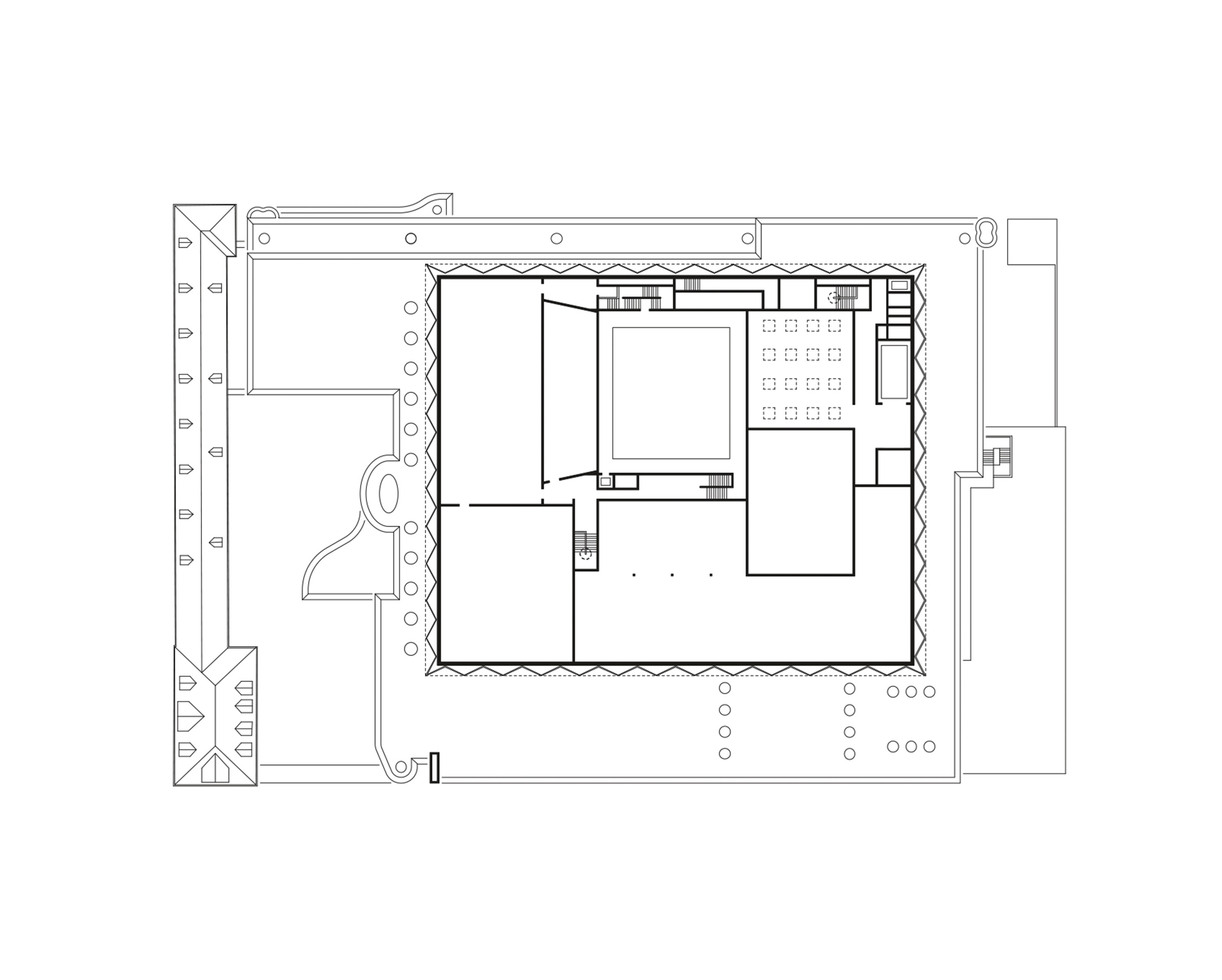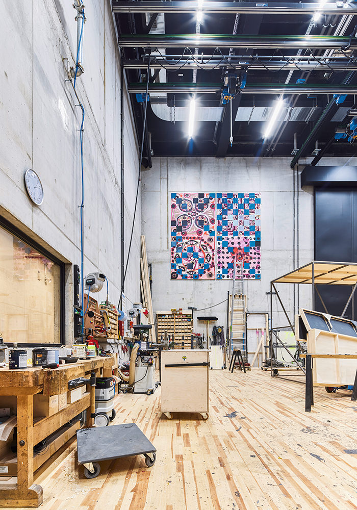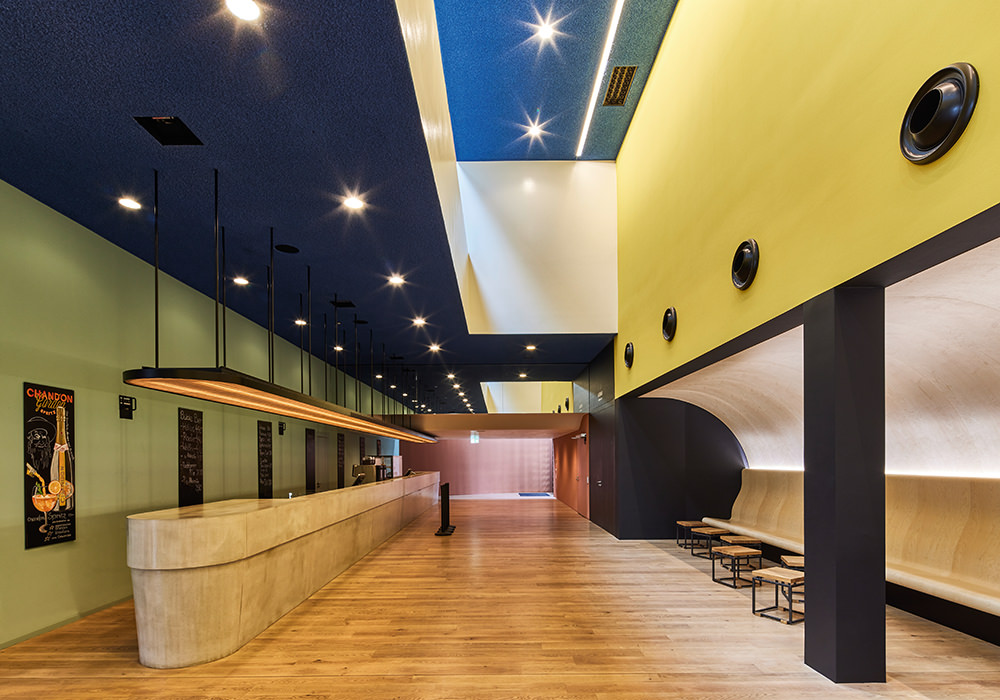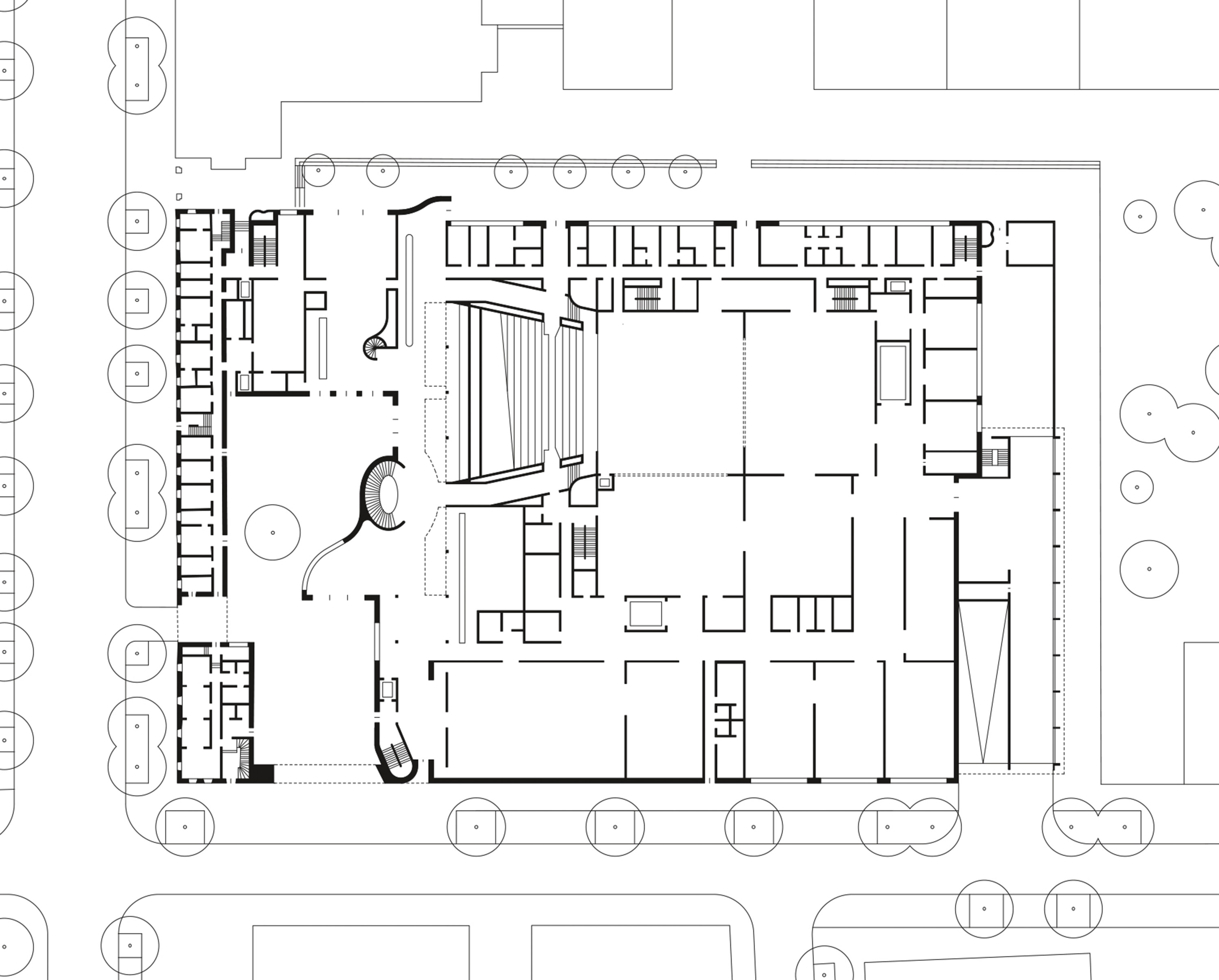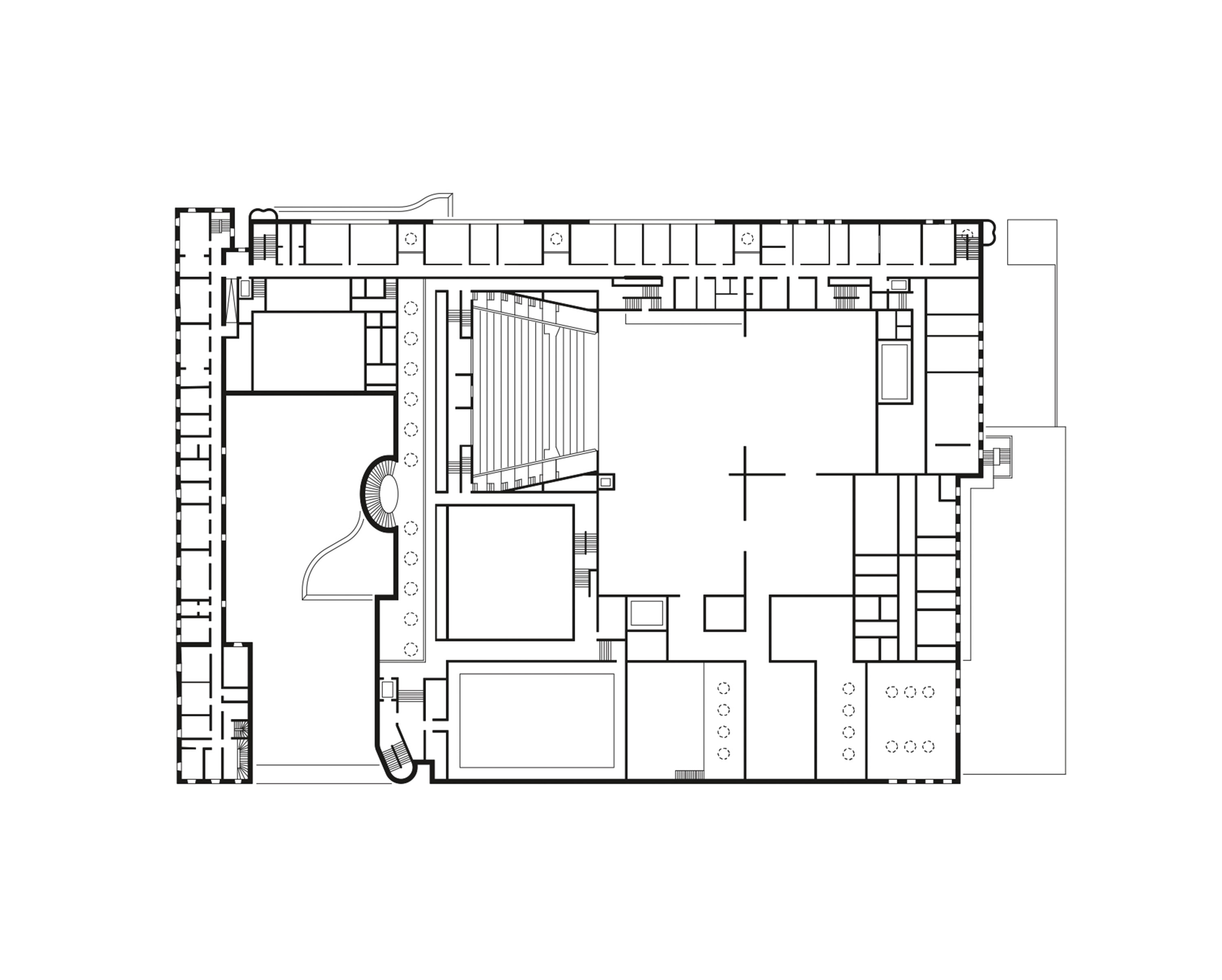 Inmitten des Schlachthausviertels entstand ein Theater für jene, die das Theater machen, denn der weitaus größte Teil eines solchen Bauwerks befindet sich hinter den drei Bühnen. Und es entstand ein Theater für jene, die es besuchen und lieben. Es entstand ein integrales Bauwerk, das denkmalgeschützte Teile des Viehhofs und die heterogene Bebauung des Umfelds miteinander versöhnt. Vor allem jedoch entstand ein Kulturgebäude, das ohne die Attitüde der Hochkultur auskommt, keinerlei Schwellenängste aufkommen lässt und dennoch ein richtiges Theater sein will. Für das Ensemble war es ein gewaltiger Schritt heraus aus der bislang genutzten Mehrzweckhalle in der Brienner Straße. Und wer sich dem neuen Volkstheater erstmals nähert, der fühlt sich spontan an die Berliner Schaubühne am Lehniner Platz, erinnert, die von Erich Mendelsohn ursprünglich als Kino und damit als Palast der Populärkultur entworfen wurde. Dass die denkmalgeschützten Schlachthäuser in Ziegel ausgeführt wurden, ist ein Glücksfall. Ermöglichten sie es den Architekten von LRO Lederer Ragnarsdóttir Oei doch, auch hier eines ihrer bevorzugten Materialien einzusetzen und das Quartier materialidentisch zu komplettieren. LRO fügten das Theaterquartier an einen alten Verwaltungstrakt des Schlachthofs an und schufen dahinter einen Innenhof zur gemeinsamen Erschließung des Theatercafés und des Foyers. Ein gewaltiger, flach überwölbter Torbogen aus Ziegeln funktioniert als perfekte Willkommensgeste und führt die Besucher von der Straße direkt zum Haupteingang. Es ist eine Übergangszone aus dem öffentlichen Raum ins Halbdunkel des Theaters.