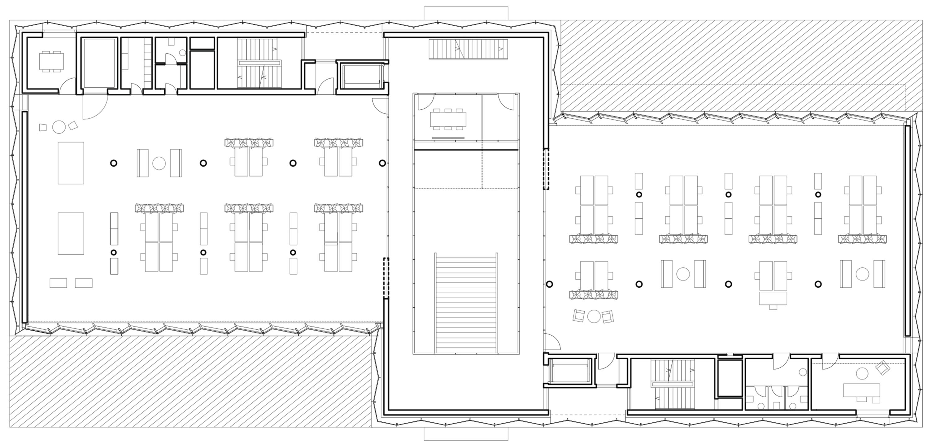 Diese Speed Factory ist deshalb der Prototyp einer Corporate Architecture, die der Kundschaft den Markenkern des Unternehmens vermitteln soll. In einem geladenen Wettbewerb setzte sich das spanische Büro Barozzi Veiga gegen illustre Konkurrenz durch. Darunter finden sich Namen wie Delugan Meissl, Peter Haimerl, Snøhetta oder Cino Zucchi.