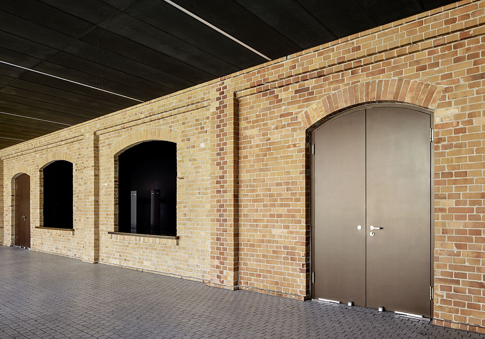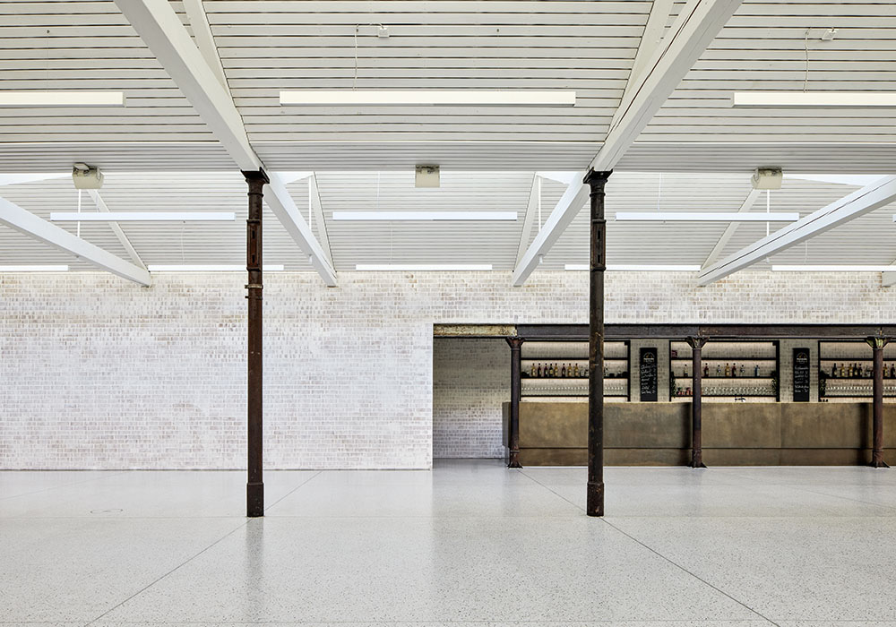 Die Fassaden dieser neuen Ergänzungen bestehen aus bronzierten Aluminiumprofilen, die mit Ziegelflächen ausgefacht wurden und den industriellen Charakter höchst elegant fortführen. Auch im Inneren gibt es feine Details. Als Boden wurde ein geschliffener Estrich eingebaut. Die Wände sind weiß geschlämmt. Die historischen gusseisernen Stützen wurden aufgearbeitet und wiederverwendet.