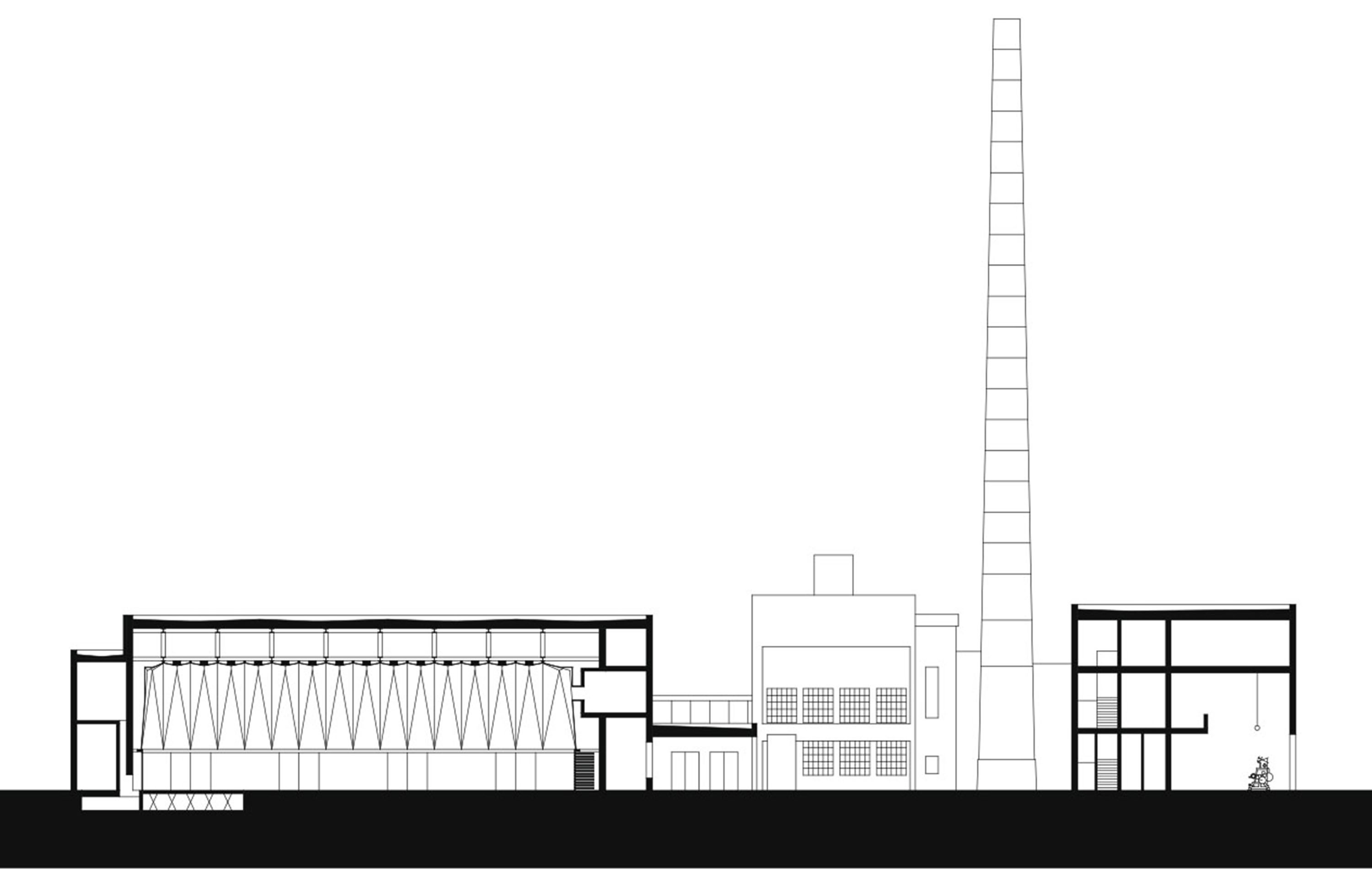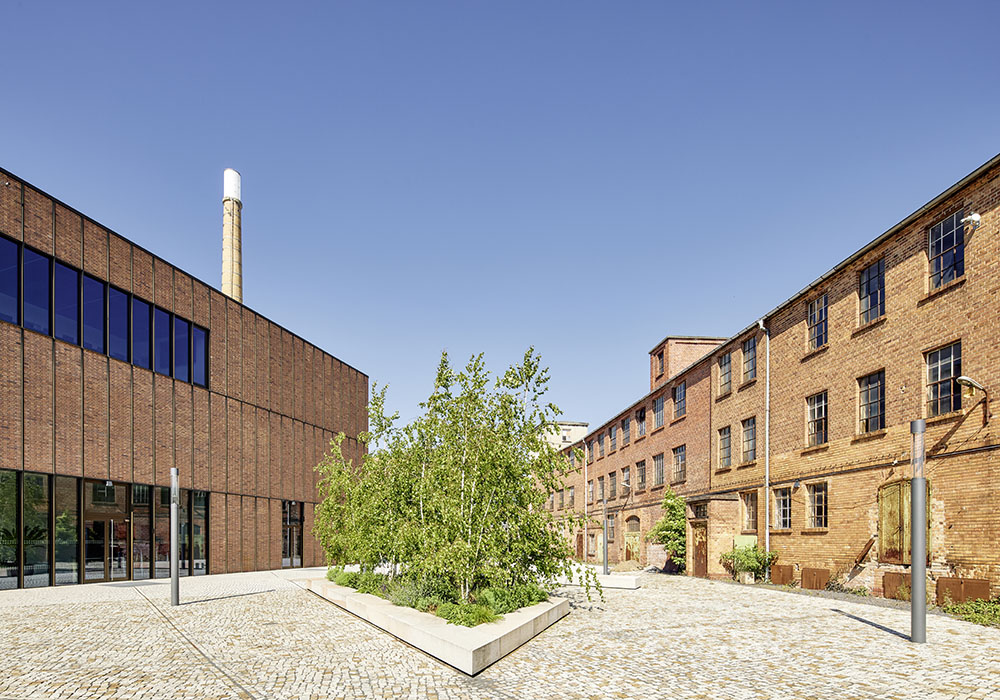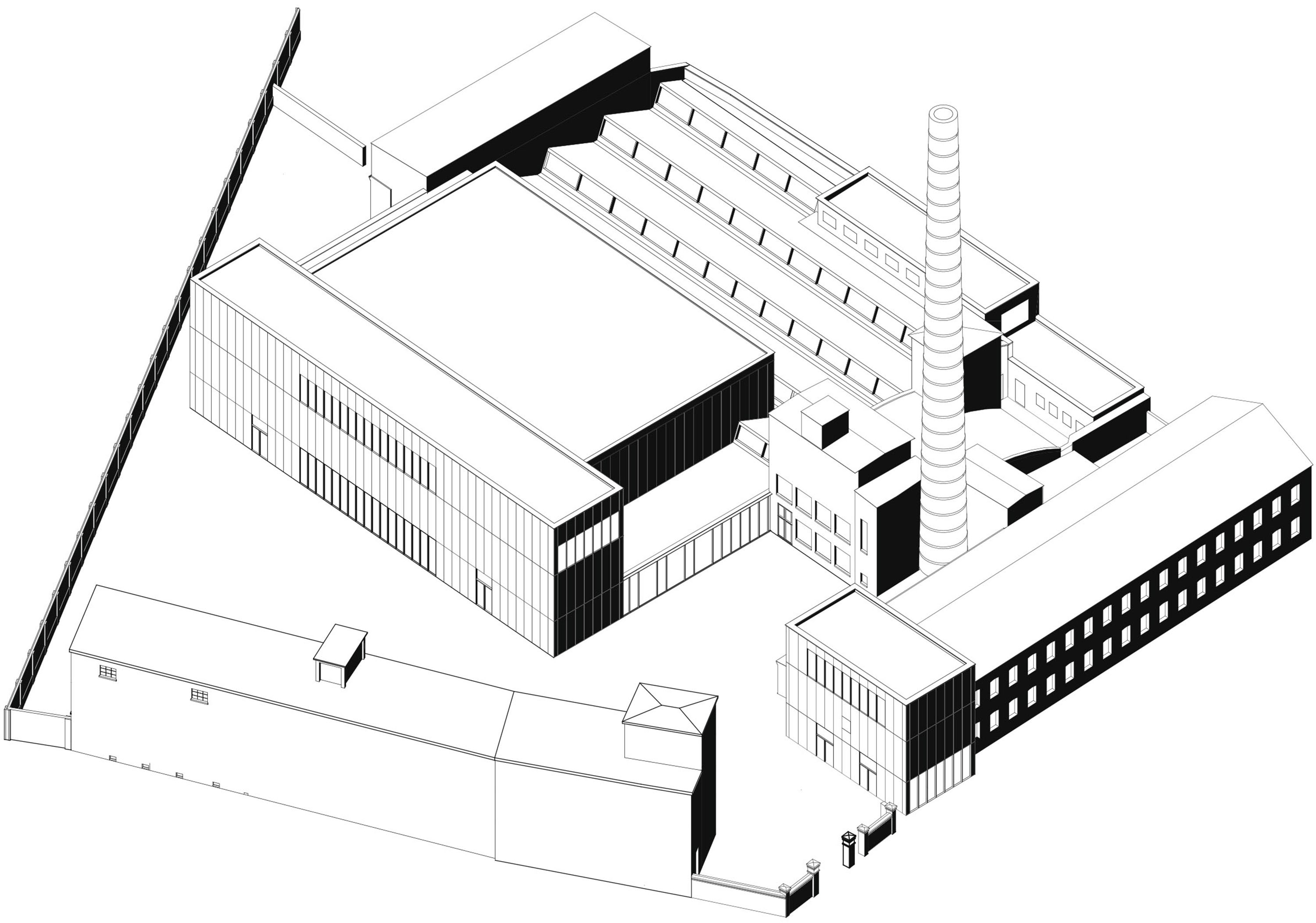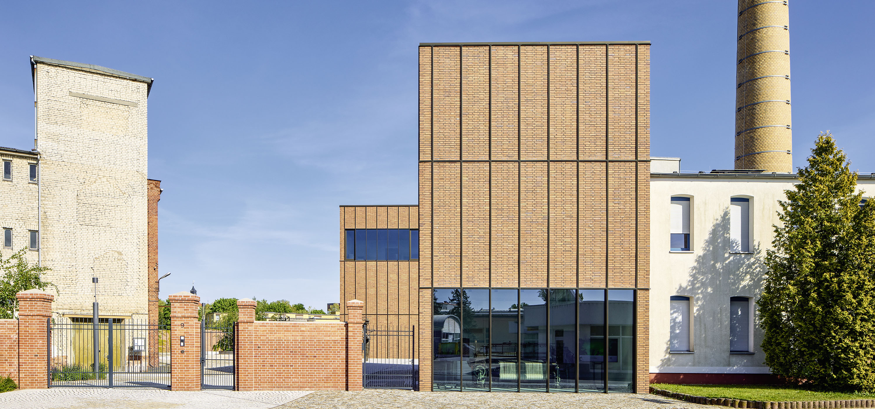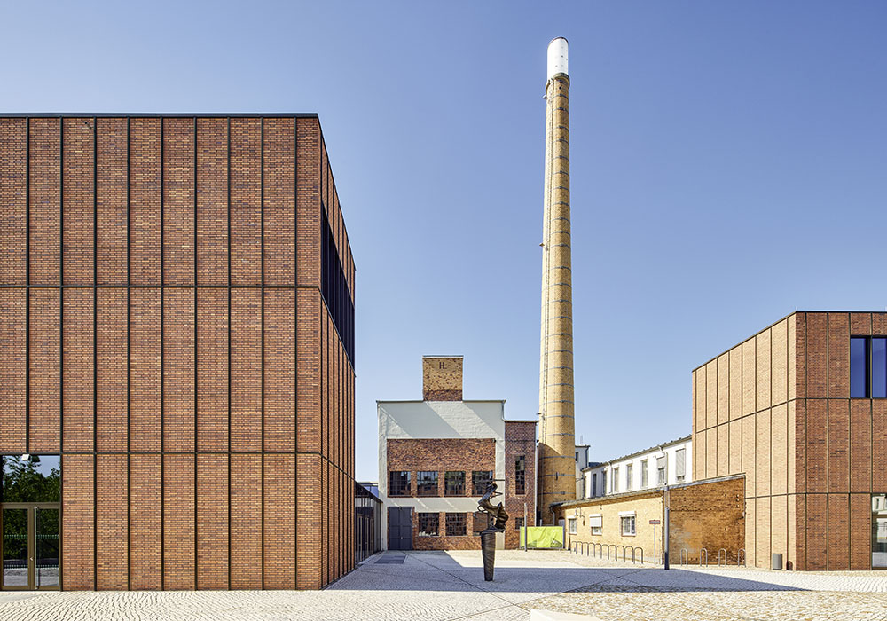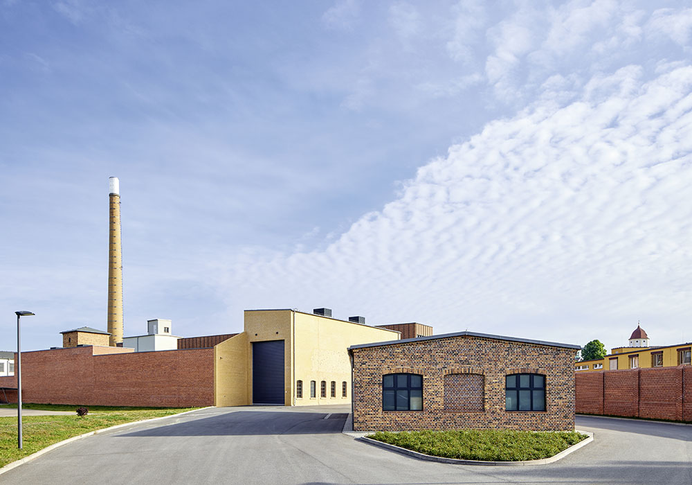 Das beauftragte Architekturbüro HBRM setzte das Thema der industrietypischen Gebäude-Ansammlungen strikt fort. Denn wann immer in diesem Industriebetrieb eine Erweiterung nötig war, wurde einfach ein Stück angesetzt. Auf dieselbe Weise ergänzte HBRM den prägnanten Schornstein samt restauriertem Heizhaus sowie eine alte, sanierte Fabrikationshalle und fügte dem Ensemble zwei Anbauten hinzu.
