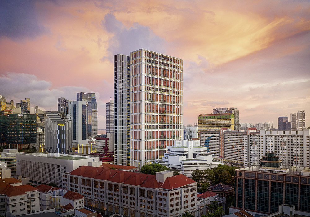 Singapur ist – noch vor New York – die Stadt mit den meisten Nominierungen für den Internationalen Hochhauspreis. Hier fällt ein bauliches Experiment der Extremklasse auf: ein sozialer Wohnungsbau für 1000 100-Quadratmeter-Wohnungen in 50-geschossiger Ausführung. Dieser Typus wurde viermal gebaut, der beste ist das Pinnacle@Duxton (2009) von arc studio. Die sieben Türme dieser imposanten Wand ragen über Chinatown mit seinen traditionellen, zweigeschossigen Shophouses mit roten Dachziegeln hinaus und bieten der Umgebung einen echten Mehrwert neben dem weitläufigen Park zu ihren Füßen. Die umlaufende Dachterrasse in 150 Metern Höhe steht den Besuchern offen. Die in der Mitte angeordnete umlaufende Joggingbahn ist dagegen ausschließlich den Bewohnern vorbehalten.