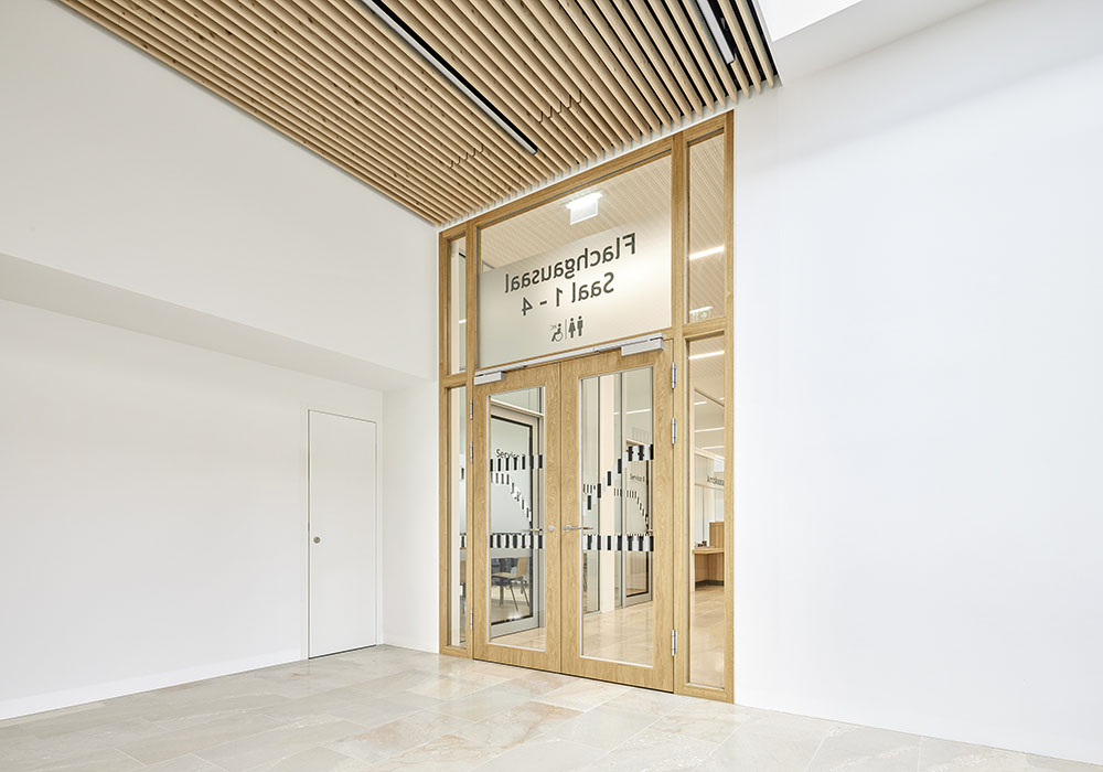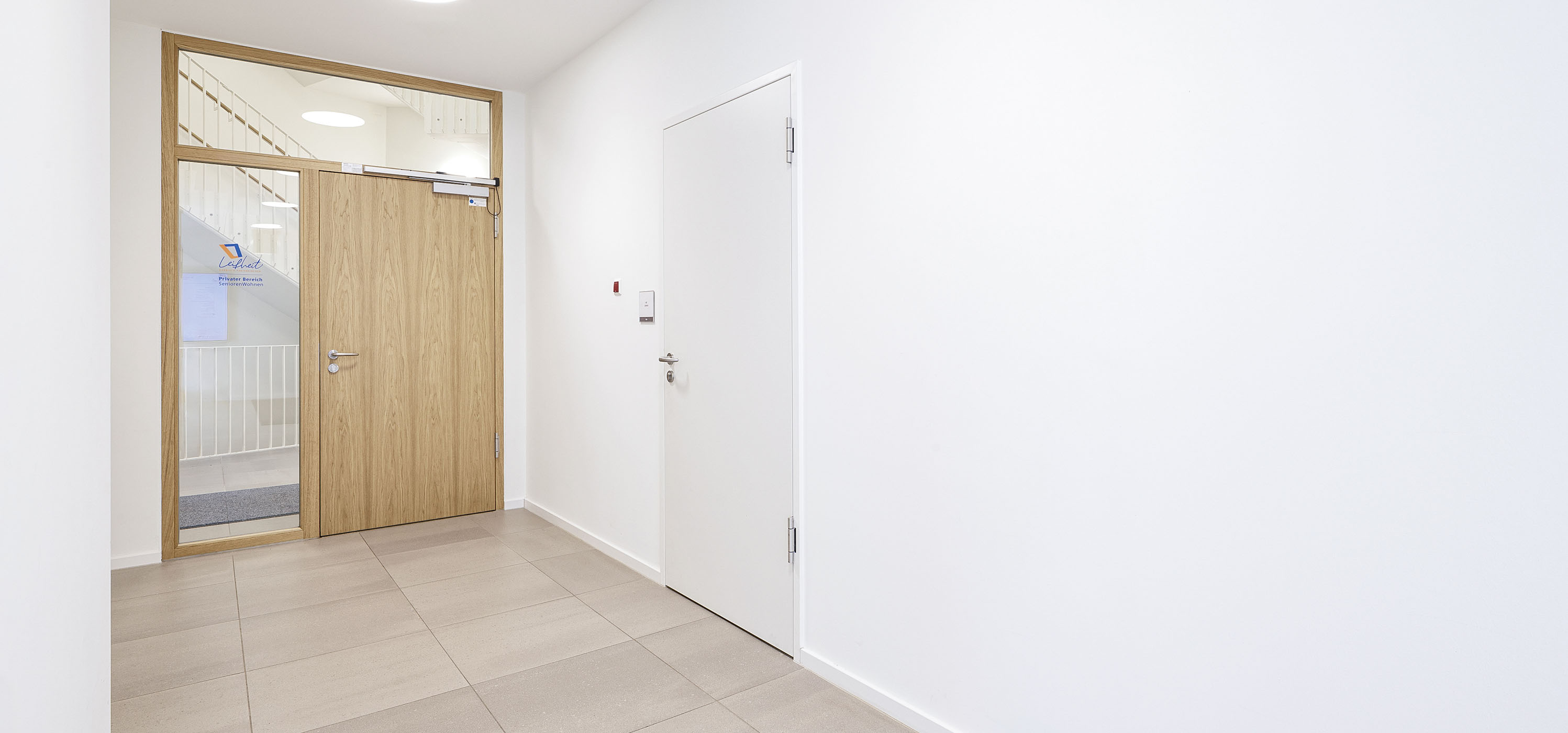 Produkt: Türen aus Holzwerkstoff mit Seitenteilen Ausführung: Türen 1-flügelig, 2-flügelig, optional mit Oberlicht oder Oberblende, Lichtausschnitt, Seitenteil 1-seitig oder 2-seitig Einbau in: Mauerwerk, Beton, Porenbeton, Leichtbauwand Zargen: Alle Holz- und Stahlzargen aus dem Schörghuber Programm Funktionen: Brandschutz T30, Rauchschutz, Schallschutz Rw = 32, 37, 42, 46 dB, Barrierefrei Zusatzausstattung: Verdeckt liegende Bänder, verdeckt liegende Türschließer, E-Öffner, Magnet- und Riegelkontakt, Fluchttüröffner, Sperrelement, automatische Drehflügelantriebe